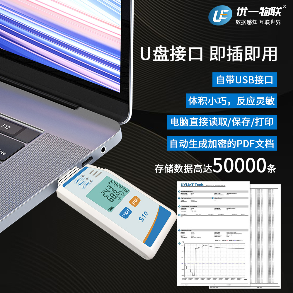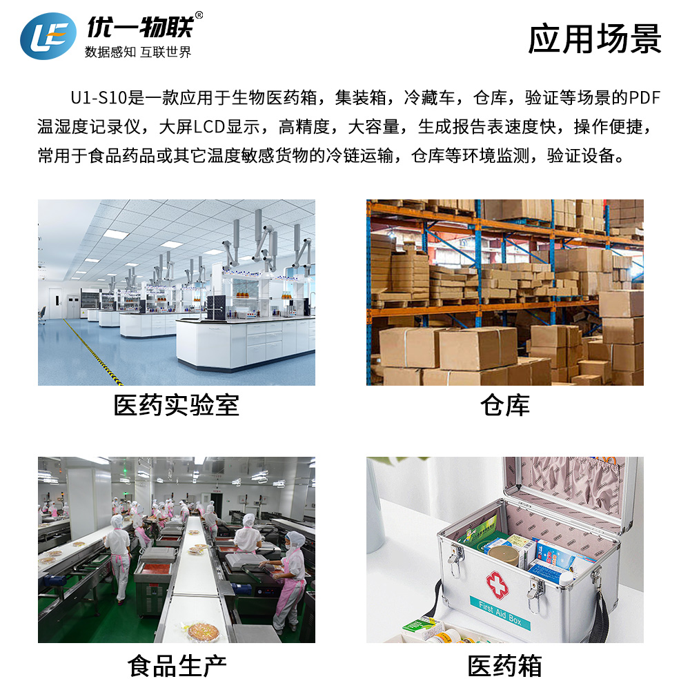 U1-S10是一款應用于生物醫(yī)藥箱,集裝箱,冷藏車,倉庫,驗證等場景的PDF溫濕度記錄儀,大屏LCD顯示,高精度,大容量,生成報告表速度快,操作便捷,常用于食品藥品或其它溫度敏感貨物的冷鏈運輸,倉庫等環(huán)境監(jiān)測,驗證設備。