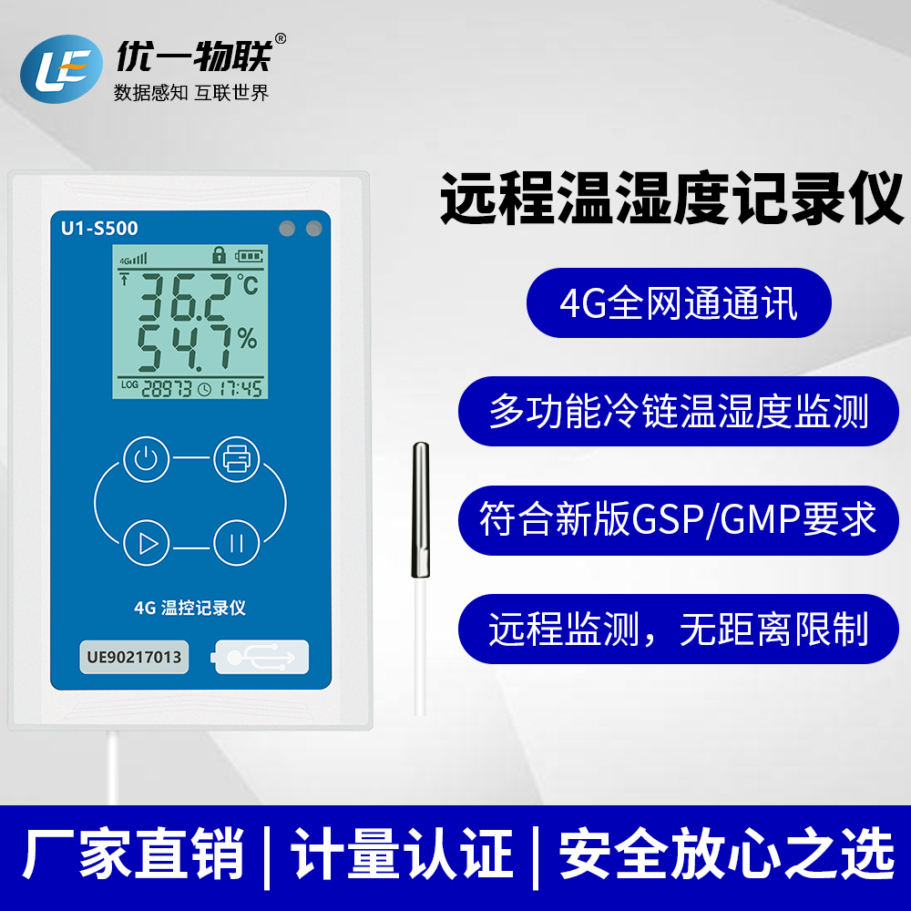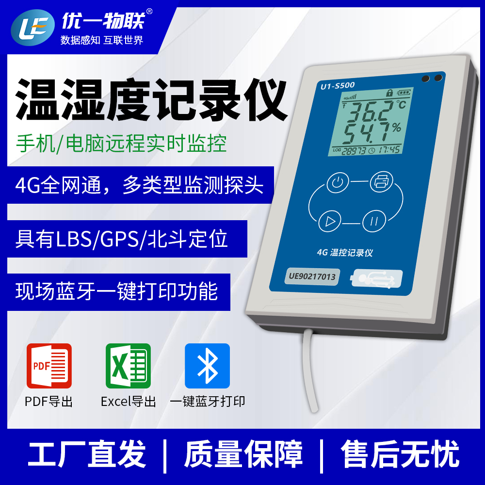 U1-S500 系列是一款應(yīng)用于保溫箱、冷藏車、冰箱、倉庫等應(yīng)用場景的4G溫控記錄儀,具有安裝支架,使用4G 網(wǎng)絡(luò)實時上傳數(shù)據(jù),同時具有LBS+GPS/北斗定位、現(xiàn)場藍(lán)牙打印等功能,滿足冷鏈物流操作中,現(xiàn)場交付冷鏈全過程的溫濕度數(shù)據(jù)記錄的要求。