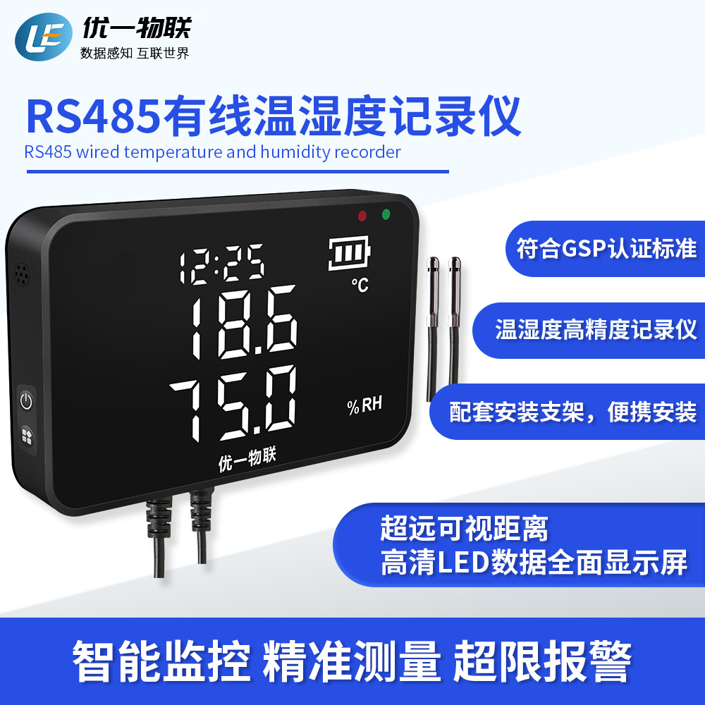 S200R RS485產(chǎn)品系列是一款安裝在固定場所的有線溫濕度記錄儀,高清全屏LED顯示,可視距離遠(yuǎn),高精度,大存儲(chǔ)容量,配套支架安裝。 廣泛應(yīng)用于農(nóng)業(yè)、食品、醫(yī)藥、化工、電子、實(shí)驗(yàn)室等在線監(jiān)測系統(tǒng)中,該記錄儀采用瑞士原裝進(jìn)口一體式傳感器,內(nèi)置充電鋰電池,支持外電供電充電,超低功耗,且都支持外置可調(diào)聲光報(bào)警器。